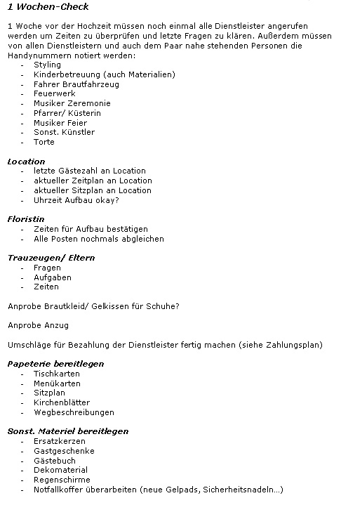 - Checkliste 1 Woche vor der Hochzeit